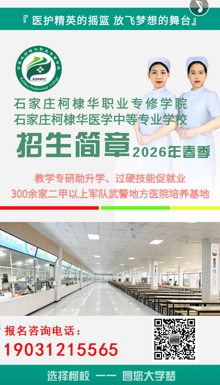 石家庄柯棣华医学中等专业学校2026招生报名了
