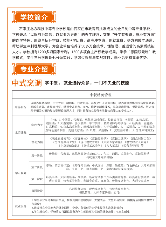 巨鹿初中毕业生学烹饪专业、西点专业:石家庄北方科技中专学校烹饪专业招生简章